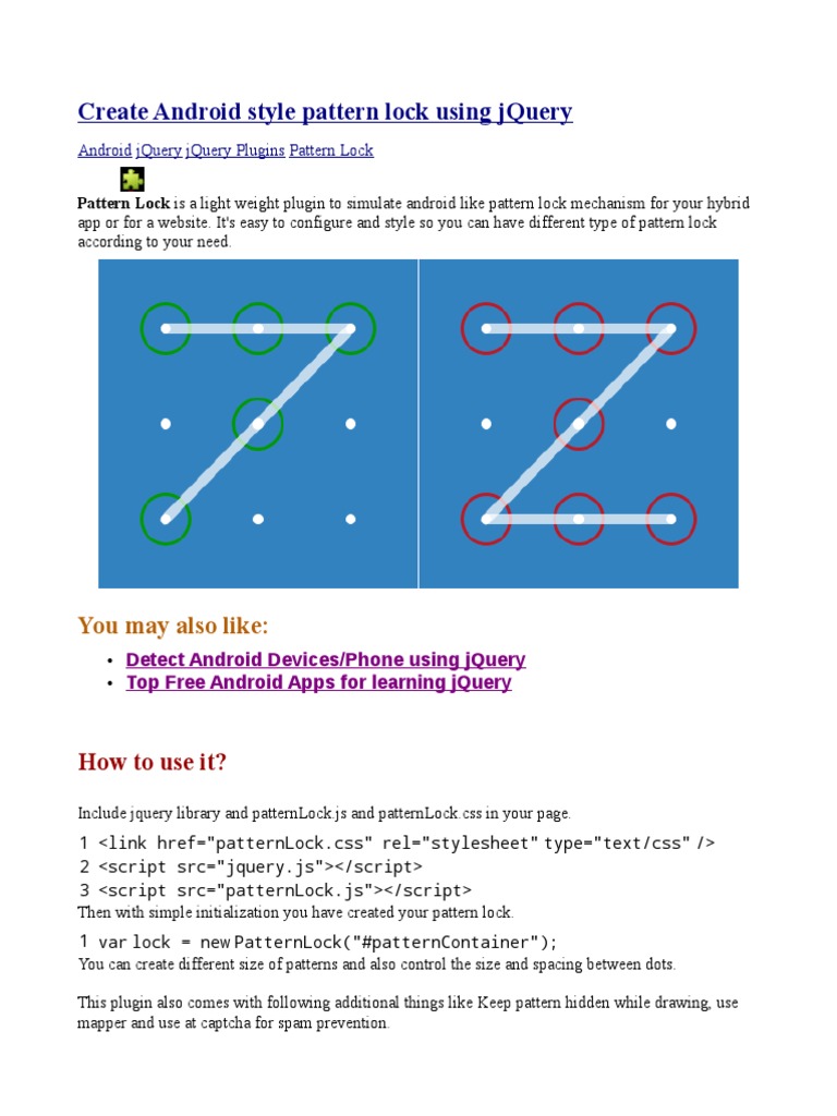/ New Pattern Lock Style / How To Customize Your Android Lock Screen : Pattern lock plugin is similar to pattern based locks available in android and other mobile os.